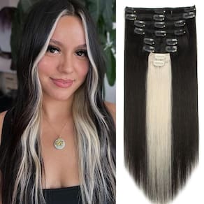 -?Clip in Hair Extensions Material real de cabelo humano?: nosso clipe reto em extensões de cabelo é feito de cabelo humano virgem Remy 100% não processado. Nosso clipe em extensões de cabelo humano real é limpo/macio/saudável/sem soltar/sem emaranho/sem química. O clipe em extensões de cabelo, cabelo humano real, é fácil de ser tingido/enrolado/reestilizado. Escolhemos cabelos de alta qualidade, tão bons quanto os seus.