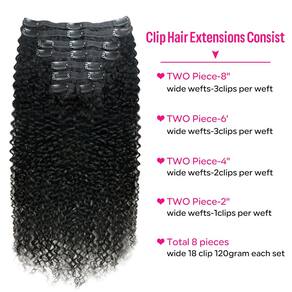 Extensões de cabelo encaracolado para mulheres negras brasileiras virgem cabelo humano grampo em extensões 8 peças encaracolado crespo clipes de cabelo humano com 18 clipes de trama de renda dupla - ?Alta qualidade?100% grampo de cabelo humano encaracolado não processado em extensões, seda e suave. Pode ser tingido, branqueado, reforçado e reestilizado como você quiser - ?Um conjunto de 8 peças e pontas?8 extensões de cabelo com clipe de 120 g de cabelo humano real com 18 clipes por conjunto. Normalmente 2 conjuntos são recomendados para fazer uma cabeça inteira, 3 conjuntos são sugeridos se você quiser mais grosso - ?Design inteligente?1. Os clipes usam clipes mínimos de 28 mm, o que é confortável de instalar 2. Clipes de aço inoxidável de alta qualidade, fortes e duráveis, podem durar toda a vida 3. Cor semelhante ao cabelo e renda, sem costura e invisível, aparência mais natural 4. Fácil de colocar e tirar em minutos. 5. Costurado à mão três vezes na trama que é mais estável e flexível - ?Trama de renda?Extensões de cabelo Remy de trama de renda feitas à mão no cabelo humano, evitam queda e emaranhamento, limpo e apertado, sem pontas duplas, sensação supermacia, respirável e confortável - ?Cuidados com o cabelo?: Use pente de dentes largos para escovar suavemente o cabelo a partir da parte inferior para minimizar a queda. Use água morna ou fria, aplique condicionador de cabelo para não adicionar na raiz. Deixe 3-4 minutos, enxaguando. Seque com uma toalha e seque ao ar livre