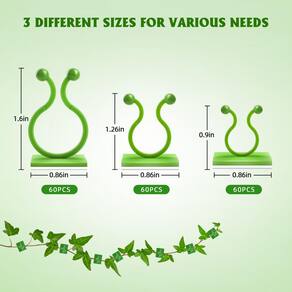 - 3 TAMANHOS DIFERENTES: Nossos clipes de parede para plantas trepadeiras - 60 grandes, 60 médios e 60 pequenos, a área adesiva inferior dos 3 tamanhos são os mesmos, então os ganchos de plantas para videiras são um suporte muito forte para plantas de muitos tamanhos. Apenas um pacote de clipes de plantas para atender às suas diferentes necessidades!