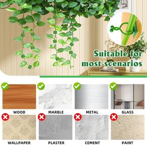 - FÁCIL DE USAR: Os clipes de plantas não precisam fazer furos na parede, basta limpar a parede, remover a película adesiva, colar os clipes de fixação na parede e colocar as videiras da planta nos clipes.