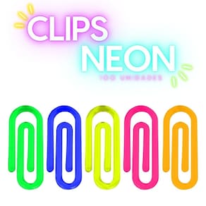 Marca: Radex. Modelo: Clips College Neon 2.0. Quantidade: 100 unidades. Material: Plástico ecológico e resistente. Cores: Tons neon vibrantes. Não enferruja: Não mancha nem danifica o papel. Leve e flexível: Prende folhas com segurança sem amassar. Sustentável: Produzido com plástico ecológico.