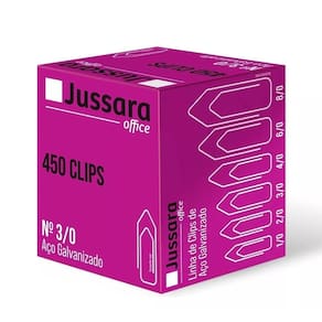 Clips para papel 3/0 jussara - 450 unidades indispensável na organização de folhas de papel, seja no escritório, na escola ou em casa. Acabamento brilhante com ótima proteção à oxidação. Características: - quantidade: 450 - tamanho: clips nº3 - material: aço galvanizado. - imagens meramente ilustrativas- c atenção: a cor do produto pode variar de acordo com o monitor atenção: o fabricante pode alterar a cor de alguma parte do produto sem aviso prévio.