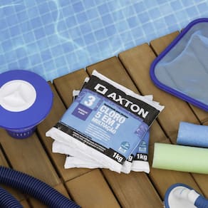 Mantenha sua piscina limpa e segura com nosso cloro granulado de alta eficacia. Ideal para purificar a agua, este produto de 1kg e perfeito para uso diario, garantindo a manutencao ideal de piscinas de qualquer tamanho. Para utiliza-lo, verifique primeiro a alcalinidade total e o pH da agua, mantendo-os nos niveis recomendados. Adicione de 2 a 4 gramas do produto por cada 1.000 litros de agua, dissolvendo-o previamente em um recipiente plastico com agua da piscina antes de aplicar uniformemente. Apos 30 minutos da aplicacao, a piscina estara pronta para uso. E essencial realizar a analise diaria do teor de cloro ativo e manter a filtragem da agua por no minimo 6 horas diarias. Aspire o fundo e escove as paredes semanalmente. Siga as precaucoes de seguranca, utilizando equipamento de protecao adequado e mantendo o produto fora do alcance de criancas e animais domesticos. Conserve o produto em sua embalagem autêntico em um local fresco e seco para garantir sua eficacia. Marca: Axton