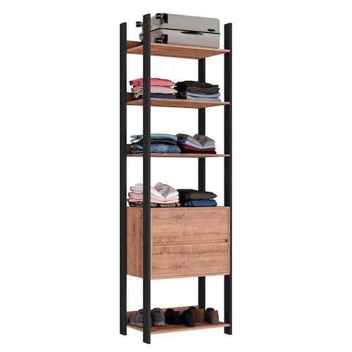 Se você gosta do objetivo e funcional, o guarda roupa closet é a personificação desse conceito! Ele possui estrutura em MDP de qualidade, com acabamento em pintura BP fosco que além de garantir durabilidade e resistência o produto, ainda contribui para um design moderno no famigerado estilo industrial! Inclusive, conta com 4 prateleiras formando nichos para deixar suas roupas favoritas sempre à disposição e 2 gavetas para acessórios ou itens conforme sua necessidade! Me diz, esse closet é um complemento imperdível né?