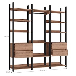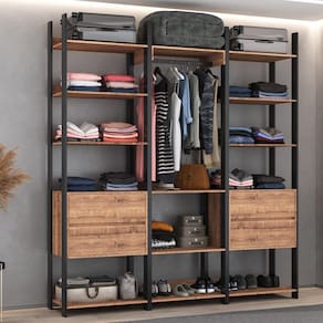 estilo industrial! Inclusive, conta com 12 prateleiras formando nichos, 4 gavetas com corrediças telescópicas e possui cabideiro para deixar suas roupas favoritas sempre à disposição! Me diz, esse