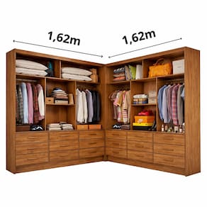 Closet 6 Portas 18 Gavetas Domus - Grand LineO Closet Domus é ideal para quem quer otimizar o espaço e manter tudo organizado, com um visual moderno e excelente aproveitamento interno. Ele conta com 6 portas e 18 gavetas, oferecendo ampla capacidade para roupas, calçados e acessórios.São 18 gavetas externas com corrediças metálicas, garantindo abertura suave, firmeza e maior durabilidade no uso diário. A estrutura é produzida em MDP que proporciona melhor acabamento e mais resistência.Um grande diferencial é a composição em 2 módulos em um único produto, permitindo diferentes formas de montagem: em L, linear ou até em paredes distintas, adaptando-se perfeitamente ao seu ambiente.Contém no Anúncio.:1 Closet 6 Portas 18 Gavetas Domus - Grand Line-Acompanha kit de pés exclusivo, com montagem opcional, garantindo estabilidade e acabamento sofisticado.Obs: Objetos de Decoração não inclusoCaracterísticas do Guarda-Roupa18 Gavetas espaçosasFácil deslizamento de portas e gavetas garantindo praticidade4 Cabideiro Espaçoso6 Prateleiras bem distribuidasProduzido em MDPParticularidades do Guarda Roupa.:Altura.: 2 MetrosLargura.: 1,62 Metros "Cada Modulado" Formato LINEARLargura Total .: 3,24 Metros Formato LADO A LADOProfundidade.: 45 cmInformações Importantes:- Produtos podem apresentar diferenças de tonalidades entre a foto na tela e o produto real, devido a calibração de cor de tela.- Limpar com flanela ou pano macio. Não utilizar álcool. Não utilizar produtos abrasivos ou corrosivos.- Nós prezamos pela qualidade da entrega em primeiro lugar, trabalhamos com transportadoras altamente selecionadas e os melhores materiais de embalagem. - Todos os itens já vão embalados.- Não responsabilizamos pela montagem.- Certifique-se de que o produto caiba em elevadores e vãos de escadas, não fazemos içamentos ou desmontagens de produtos. Quaisquer despesas deste tipo ficam a cargo do cliente - Ao receber o produto verificar as condições do mesmo no ato da entrega. Marca: Não Informado