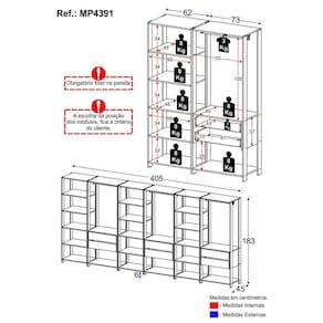 Dimensões do Produto Montado - Altura: 183cm | Largura: 405cm | Profundidade: 45cm