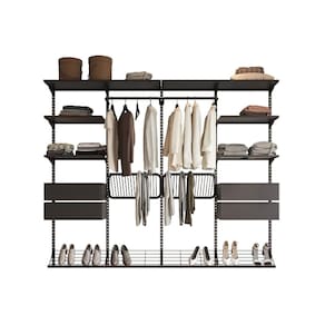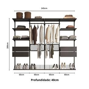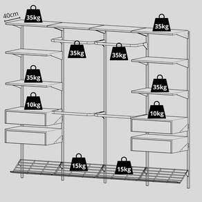 Transforme espaços compactos em ambientes organizados e modernos com o Closet Modular da Closet Home. Ideal para quem mora em apartamento ou precisa aproveitar melhor o quarto sem investir em móveis planejados caros, ele é a solução prática e acessível. O design aberto e ventilado evita mofo e mau cheiro, enquanto a estrutura metálica com pintura epóxi suporta até 35kg por prateleira e dispensa preocupação com cupins. Com layout modular, é possível adaptar, expandir ou reorganizar conforme sua rotina. A montagem é simples, com manual ilustrado e vídeo tutorial. O visual leve combina com qualquer estilo de decoração. Acabamento: Pintura Ambiente Principal: Quarto codigo_ean: 7900288358509 Complexidade da Montagem: Média: pode ser montado por mais de uma pessoa e/ou necessite de maior conhecimento para montagem Cor: Preto Cor do Produto: Preto Escala de Brilho: Semi-Brilho Itens Inclusos: 1 Closet Modulado, Manual de Montagem e Kit Ferragem Linha ou Coleção: Eminence Manual de Montagem e Instalação: https://product-hub-prd.madeiramadeira.com.br/852821276/documents/03452796-49e4-4a41-9c47-962e95d92e8a3444569671217734163040564.pdf Marca: Closet Home Material Principal: Aço Necessita Montagem: Sim Origem do Produto: Nacional Peso: 74 kg Recomendações de Uso, Manutenção e Limpeza: Limpe regularmente com pano macio umedecido com sabão neutro e seque em seguida com pano seco; Não utilize esponjas ásperas ou produtos químicos abrasivos. Sistema de Montagem: Cavilhas, Minifix, Prafusos e Buchas Suporta Até (kg): 490 kg Marca: Não Informado