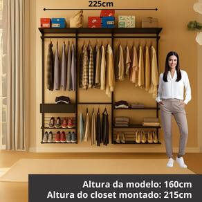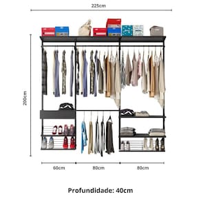 "Closet Modular para Quarto Pequeno – Organização com Estilo e Sem Mofo Transforme espaços compactos em ambientes organizados e modernos com o Closet Modular da Closet Home. Ideal para quem mora em apartamento ou precisa aproveitar melhor o quarto sem investir em móveis planejados caros, ele é a solução prática e acessível. O design aberto e ventilado evita mofo e mau cheiro, enquanto a estrutura metálica com pintura epóxi suporta até 35kg por prateleira e dispensa preocupação com cupins. Com layout modular, é possível adaptar, expandir ou reorganizar conforme sua rotina. A montagem é simples, com manual ilustrado e vídeo tutorial. O visual leve combina com qualquer estilo de decoração — e o melhor: com garantia vitalícia, você compra uma vez só." Acabamento: Pintura Ambiente Principal: Quarto codigo_ean: 7900288358639 Complexidade da Montagem: Média: pode ser montado por mais de uma pessoa e/ou necessite de maior conhecimento para montagem Cor: Preto Cor do Produto: Preto Escala de Brilho: Semi-Brilho Itens Inclusos: 1 Closet e Kit Ferragerm Linha ou Coleção: Eminence Manual de Montagem e Instalação: https://product-hub-prd.madeiramadeira.com.br/854936585/documents/66b365e9-2b0d-4dac-af38-d9ee1ac8b1663444569671217734163040564.pdf Marca: Closet Home Material Principal: Aço Necessita Montagem: Sim Origem do Produto: Nacional Peso: 42 kg Recomendações de Uso, Manutenção e Limpeza: Dicas de Limpeza e Conservação Limpe regularmente com pano macio umedecido com sabão neutro e seque em seguida com pano seco; Não utilize esponjas ásperas ou produtos químicos abrasivos. Sistema de Montagem: Cavilhas, Minifix, Prafusos e Buchas Suporta Até (kg): 385 kg Marca: Não Informado
