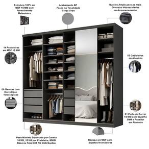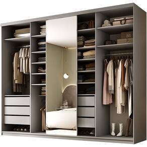 MDFA grandiosidade de um walk-in closet em um móvel pronto. Para quem demanda máximo espaço e impacto visual, o Closet Casal Sonni 277cm é a declaração definitiva. Sua extensão generosa oferece uma organização completa e categorizada para todo o guarda roupa do casal. O grande espelho na porta de correr cria um efeito espetacular de amplitude e luz, ao passo que cada detalhe, das corrediças telescópicas ao acabamento impecável, fala de qualidade superior. Eleve seu quarto de casal ao patamar do luxo organizado e funcional. Confira as especificações técnicas e surpreenda-se!
