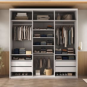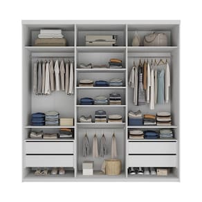Conheça o Closet Moutier, a escolha perfeita para quem deseja unir elegância e funcionalidade. Produzido com materiais de alta qualidade, o Closet Moutier é fabricado em painéis de MDF de 1,5cm com acabamento melamínico em baixa pressão, garantindo alta resistência e durabilidade. Conta com corrediças telescópicas, proporcionando um deslizamento suave e seguro das gavetas para mais conforto no dia a dia. Seu design inteligente oferece amplo espaço interno e uma distribuição bem planejada, facilitando a organização e o acesso às suas roupas e acessórios. Ideal para quem busca praticidade sem abrir mão do bom gosto. Adicione o Closet Moutier ao seu quarto e transforme seu ambiente! Acabamento da Prateleira: BP Melamínico Escala de Brilho da Prateleira: Fosco Possui Cabideiros: Sim Acabamento da Gaveta: BP Melamínico Escala de Brilho da Gaveta: Fosco Possui Organizador de Gaveta: Não Acabamento dos Pés: BP Melamínico Altura dos Pés: 5 cm Ambiente Principal: Quarto codigo_ean: 7900288071996 Complexidade da Montagem: Alta: deve ser montado por um montador especializado Cor: Branco Cor do Produto: Branco Cor Interna: Branco Escala de Brilho: Fosco Espessura da Estrutura (mm): 15 mm Espessura das Prateleiras (mm): 15 mm Espessura do Fundo (mm): 3 mm Espessura do Fundo das Gavetas (mm): 3 mm Itens Inclusos: 1 Closet + 1 Manual de Montagem Linha ou Coleção: Moutier Manual de Montagem e Instalação: https://product-hub-prd.madeiramadeira.com.br/977104/documents/0a944a73-a4e4-49e5-85b1-2f8cab6d89b4270264194517400054990706.pdf Marca: RR Móveis Material da Gaveta: MDF Material da Prateleira: MDF Material dos Pés: MDF Material Principal: MDF modular: Não Necessita Montagem: Sim Origem do Produto: Nacional Peso: 160 kg Peso Máximo por Gaveta: 10 kg Peso Máximo por Prateleira: 10 kg Possui Calceiros: Não Possui Espelho: Não Possui Pés: Rodapé Possui Portas: Não Possui Prateleiras: Sim Produto Montado: Sim Quantidade de Cabideiros: 03 Cabideiros Quantidade de Gavetas: 04 Gavetas Quantidade de Prateleiras: 09 Prateleiras Recomendações de Uso, Manutenção e Limpeza: Pano Umido Sistema de Montagem: Parafusos e Cantoneiras Tipo de Corrediça da Gaveta: Metálica Telescópica Tipo de Gaveta: Interna Tipo de Guarda-Roupa: Closet Tipo de Puxador da Gaveta: Não Possui Marca: RR Móveis