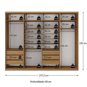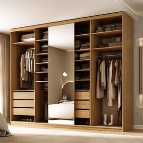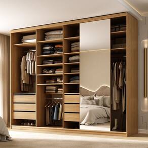 Conta com gavetas com corrediças telescópicas para deslizamento suave, além de espelho inteiriço na porta de correr, que traz elegância e amplitude ao quarto. Sua distribuição interna inteligente facilita a organização do dia a dia, oferecendo qualidade de móveis planejados em um produto pronto para transformar seu espaço. Acabamento da Prateleira: BP Melamínico Escala de Brilho da Prateleira: Fosco Possui Cabideiros: Sim Acabamento da Gaveta: BP Melamínico Escala de Brilho da Gaveta: Fosco Possui Organizador de Gaveta: Não Acabamento da Porta: BP Melamínico Escala de Brilho da Porta: Fosco Material do Puxador da Porta: Alumínio Acabamento dos Pés: BP Melamínico Altura do Espelho: 223 cm Altura dos Pés: 6 cm Altura Máxima dos Pés: 6.0000 Ambiente Principal: Quarto codigo_ean: 7900288348326 Complexidade da Montagem: Alta: deve ser montado por um montador especializado Cor: Nogueira Cor da Porta: Espelhado Cor do Produto: Nogueira Cor Interna: Nogueira Escala de Brilho: Fosco Espessura da Estrutura (mm): 15 mm Espessura das Portas (mm): 18 mm Espessura das Prateleiras (mm): 15 mm Espessura do Espelho: 3 mm Espessura do Fundo (mm): 3 mm Espessura do Fundo das Gavetas (mm): 3 mm Formato do Espelho: Retangular Gaveta com Chave: Não Itens Inclusos: Guarda Roupa e Manual de Montagem Largura do Espelho: 66 cm Linha ou Coleção: Essen Manual de Montagem e Instalação: https://product-hub-prd.madeiramadeira.com.br/138951380/documents/dfa6bbae-711d-47c7-b6e3-42981ac9f98b343391994517727482228753.pdf Marca: RR Móveis Material da Gaveta: MDF Material da Porta: MDF/Espelho Material da Prateleira: MDF Material dos Pés: MDF Material Principal: MDF modular: Não Necessita Montagem: Sim Origem do Produto: Nacional Peso: 210 kg Peso Máximo por Gaveta: 10 kg Peso Máximo por Prateleira: 10 kg Porta Janelada: Não Possui Calceiros: Não Possui Espelho: Sim Possui Pés: Rodapé Possui Portas: Sim Possui Prateleiras: Sim Produto Montado: Sim Quantidade de Espelho: 01 Quantidade de Gavetas: 06 Gavetas Quantidade de Portas com Espelhos: 1 Porta com Espelho Quantidade de Prateleiras: 14 Prateleiras Recomendações de Uso, Manutenção e Limpeza: Pano umido Sapatas Niveladoras: Sim Sistema de Montagem: Parafusos, Cavilhas e Cantoneiras Tipo de Corrediça da Gaveta: Metálica Telescópica Tipo de Dobradiça/Corrediça da Porta: Alumínio Tipo de Fixação do Espelho: Silicone Tipo de Gaveta: Interna Tipo de Guarda-Roupa: Casal Tipo de Puxador da Gaveta: Não Possui Tipo de Puxador da Porta: Externo Marca: Não Informado