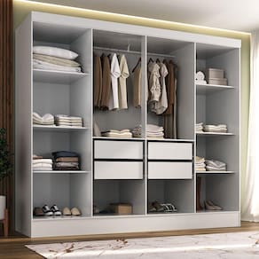 O Closet Jatobá é um item elegante e durável, feito de MDP de 12mm. Possui rodapés, encabeçamento e demais componentes também em MDP. O fundo do roupeiro e das gavetas são em MDF de 3mm alem de contar com corrediças metálicas para um deslizamento suave das gavetas. A pintura UV fosca e o interior na cor do produto proporcionam um acabamento refinado. Acompanha manual de montagem detalhado e embalagem segura. Com design moderno e pés inclusos, é uma escolha prática e elegante para organizar seus pertences. Acabamento da Gaveta: Pintura Texturizada UV Acabamento da Prateleira: Pintura Texturizada UV Ambiente Principal: Quarto Complexidade da Montagem: Alta: deve ser montado por um montador especializado Composição: MDP Cor: Branco Cor do Produto: Branco Escala de Brilho: Fosco Escala de Brilho da Prateleira: Fosco Espessura da Prateleira: 12 Espessura do Material da Estrutura: 12 mm Gaveta com Chave: Não Itens Inclusos: Closet, Kit Ferragens e Manual de Montagem Linha ou Coleção: YesCasa Manual de Montagem e Instalação: https://cdn2.madeiramadeira.com.br/atributo/rodial/1670309-manual-de-montagem-gr8410-yescasa-branco.pdf Material da Prateleira: MDP Material Principal: MDP modular: Não Necessita Montagem: Sim O Módulo Pode ser utilizado individualmente: Sim Origem do Produto: Nacional Peso: 87,23 kg Peso Máximo por Gaveta: 5 Peso Máximo por Prateleira: 7 Possui Cabideiros: 01 Possui Calceiros: Não Possui Espelho: Não Possui Organizador de Gaveta: Não Possui Pés: Não Possui Portas: Não Possui Prateleiras: 08 Prateleira Móvel: Sim Quantidade de Peças: 01 Recomendações de Uso, Manutenção e Limpeza: pano levemente úmido Sistema de Montagem: parafusos, cavilhas e cantoneiras Suporta Até (kg): kg Tipo de Corrediça da Gaveta: Metálica Simples Tipo de Gaveta: Interna Tipo de Guarda-Roupa: Closet Tipo de Módulo: Closet Tipo de Puxador da Gaveta: Embutido Tipo de Quarto: Casal