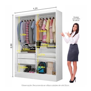 Dimensões do Produto: Altura: 200 cm Largura: 131 cm Profundidade: 45 cm Peso: 47 kg