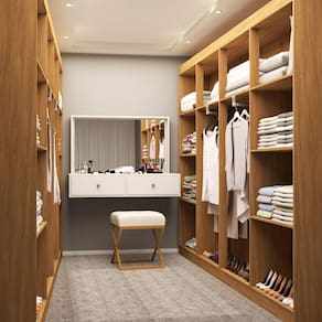 O(a) Closet Casal em L Ele e Ela 4 Metros 16 Prateleiras 4 Cabideiros Cinamomo Fosco - Loja é produzido em MDP na escala de brilho Semi-Fosco, e possui um grau de dificuldade de montagem: Médio.