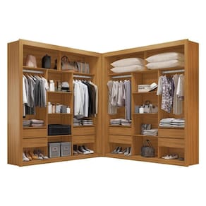 O Closet Closet Casal Premium 8 Gavetas Amoudi Móveis possui dois módulos iguais, sendo cada um deles com 2,08m de altura, 1,93m de largura e 46,1cm de profundidade de forma a oferecer ao seu quarto otimização e muito espaço. Cada módulo conta com dois cabideiros e quatro gavetas com corrediças metálicas, um maleiro superior muito espaçoso e nichos inferiores ideais para manter os calçados sempre à mão. Além disso, cada módulo conta também com uma torre central com 3 prateleiras muito espaçosas para você distribuir seus itens de forma prática e organizada. Não possui portas.