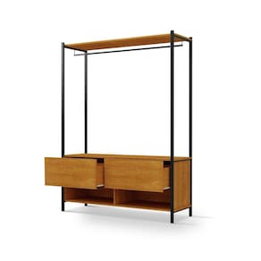 Closet Estilo Industrial Dallas com 2 gavetas e suporte para cabide.