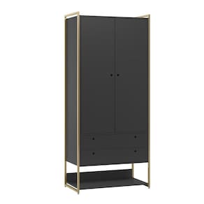 O Closet Ind. Olivar-Módulo 05 é um produto que mostra uma diversidade de materiais, com metal nas laterais e MDF e MDP de 15 mm. Ele possui 1 prateleira para acomodar objetos, calçados ou roupas, duas portas e um cabideiro de alumínio, duas gavetas com corrediças telescópicas, um detalhe usinado na frente da gaveta e das portas para servir como puxador e possui pés reguláveis para facilitar nos desníveis dos pisos. Este produto é ideal para quarto que poderá também juntar-se com outros módulos da Olivar Móveis e montar um Closet maior onde irão acomodar tudo que você precisa. É um produto com design de uma pegada industrial para quem gosta do estilo mais urbano e contemporâneo onde você personaliza seu ambiente deixando-o exclusivo.