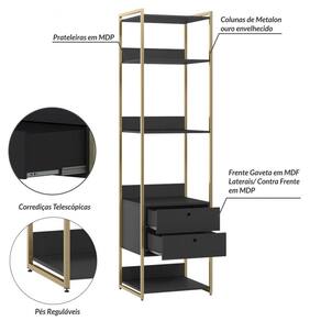 - Quantidade de Portas: Não possui - Tipo de Closet: Modulado - Material: MDF e MDP - Acompanha Porta?: Não - Peso do Produto Montado: 46 - Peso Máximo Suportado: 60 - Medida do Produto Montado (LXCXA): 47cmX143,2cmX200cm - Quantidade de Pés: 8 - Tipo de Pés: De Metal e Plástico - Tipo de Porta: Não Possui - Quantidade de Prateleiras: 10 - Tipo de Prateleira: Fixa - Recomendações de manutenção: Pano úmido. Não aplicar lustra móveis. - Volumes: 5 - Garantia: 3 Meses - Acabamento: Pintura UV - Escala de Brilho: Acetinado - Material da Estrutura: MDF E MDP 15MM - Produto Necessita de Montagem?: Sim - Quantidade de Gaveta: 4 - Tipo de Gaveta: Com Corrediça Telescópica