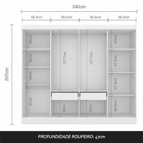 Medida dos Módulos Individuais: A: 207cm x L:240cm x P: 47cm (Cada)