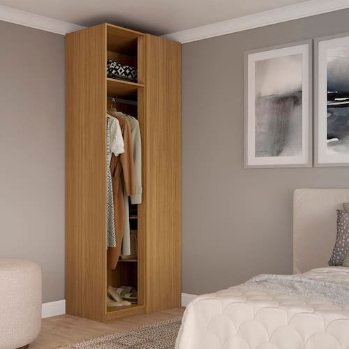 A linha modulada Altezza é ideal para você planejar e organizar o espaço do seu cômodo da forma que quiser, utilizando da melhor forma os espaços com móveis bonitos e de qualidade! O Closet de Canto Reto Sem Portas Altezza é para você que quer aproveitar aquele cantinho do seu quarto com um móvel de design sofisticado e ótima divisão interna! Os módulos são produzidos 100% em MDF 15cm (estrutura e divisões internas) e pintura texturizada com 7 camadas (que confere maior resistência à riscos e batidas). Com design inspirado nas tendências dos móveis planejados, seu grande diferencial é a altura de 2,40m (uma das maiores do mercado) e sua excelente divisão interna para melhor organização e disposição dos seus pertences. Pode ser utilizado de forma avulsa ou como composição da linha Acabamento da Prateleira: Pintura Texturizada UV Ambiente Principal: Quarto codigo_ean: 7900288193971 Complexidade da Montagem: Média: pode ser montado por mais de uma pessoa e/ou necessite de maior conhecimento para montagem Composição: MDF Cor: Freijó Cor do Produto: Freijó Cor Interna: Marrom Escala de Brilho: Fosco Espessura do Material da Estrutura: 15 mm Itens Inclusos: 1 Guarda-Roupa, Kit Ferragens e Manual de Montagem Linha ou Coleção: Altezza Manual de Montagem e Instalação: https://product-hub-prd.madeiramadeira.com.br/123935369/documents/ebb391dc-6ace-42dd-b38c-7c502dd5d8953059518559817520653031742.pdf Marca: Belmax Material da Prateleira: MDF Material Principal: MDF Necessita Montagem: Sim O Módulo Pode ser utilizado individualmente: Sim Origem do Produto: Nacional Peso: 44 kg Peso Máximo por Prateleira: 10 kg Possui Espelho: Não Possui Pés: Não Possui Portas: Não Possui Prateleiras: 04 Recomendações de Uso, Manutenção e Limpeza: Pano seco. Sistema de Montagem: Parafusos, cavilhas. Tipo de Módulo: Closet