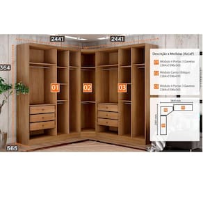 Conteudo da Embalagem: 01 Closet Modulado Safira 001 01 Kit Ferragens 01 Manual de Montagem