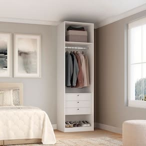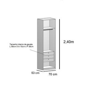 A linha modulada Altezza é a opção ideal para você organizar o seu cômodo da forma que quiser, otimizando os espaços com móveis sofisticados, resistentes e de qualidade! O Closet com Gavetas 70cm Altezza é produzido 100% em MDF de 15cm (estrutura, gavetas e divisões internas) e pintura texturizada com 7 camadas (que confere maior resistência à riscos e batidas). Com design inspirado nas tendências dos móveis planejados, seu grande diferencial é a altura de 240cm (uma das maiores do mercado) e sua excelente divisão interna para melhor organização e disposição dos seus pertences. As gavetas são equipadas com corrediças telescópicas, que garantem melhor deslizamento e maior durabilidade. Acabamento da Prateleira: Pintura Texturizada UV Acabamento da Gaveta: Pintura Texturizada UV Ambiente Principal: Quarto codigo_ean: 7900288193223 Complexidade da Montagem: Média: pode ser montado por mais de uma pessoa e/ou necessite de maior conhecimento para montagem Composição: MDF Cor: Branco Cor do Produto: Branco Cor Interna: Branco Escala de Brilho: Fosco Espessura do Material da Estrutura: 15 mm Gaveta com Chave: Não Itens Inclusos: 1 Closet, Kit Ferragens e Manual de Montagem Linha ou Coleção: Altezza Manual de Montagem e Instalação: https://product-hub-prd.madeiramadeira.com.br/192861445/documents/b94f52c7-5858-49fd-8ce5-afdafe587e653059210559817520635091593.pdf Marca: Belmax Material da Gaveta: MDF Material da Prateleira: MDF Material Principal: MDF Necessita Montagem: Sim O Módulo Pode ser utilizado individualmente: Sim Origem do Produto: Nacional Peso: 44 kg Peso Máximo por Gaveta: 10 kg Peso Máximo por Prateleira: 10 kg Possui Espelho: Não Possui Pés: Não Possui Portas: Não Possui Prateleiras: 01 Recomendações de Uso, Manutenção e Limpeza: Utilizar pano seco. Sistema de Montagem: Parafusos, cavilhas. Tipo de Corrediça da Gaveta: Metálica Telescópica Tipo de Módulo: Closet Tipo de Puxador da Gaveta: Externo