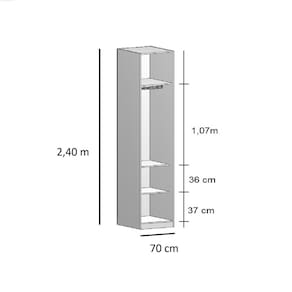 A linha modulada Altezza é a opção ideal para você organizar o seu cômodo da forma que quiser, otimizando os espaços com móveis sofisticados, resistentes e de qualidade! O Closet com Prateleiras/Cabideiros 70cm Altezza é totalmente versátil e adaptável as suas necessidades, podendo ser montado apenas com prateleiras, com prateleiras e 2 cabideiros e também com 2 prateleiras e 1 cabideiro. Produzido 100% em MDF de 15cm (estrutura e divisões internas) e pintura texturizada com 7 camadas (que confere maior resistência à riscos e batidas). Com design inspirado nas tendências dos móveis planejados, seu grande diferencial é a altura de 2,40m (uma das maiores do mercado) e sua excelente divisão interna para melhor organização e disposição dos seus pertences.