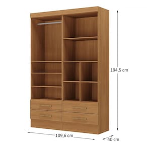 O(a) Closet Modulare 4 Gavetas 7 Prateleiras Cinamomo - Loja é produzido em MDP na escala de brilho Fosco, e possui um grau de dificuldade de montagem: Médio.