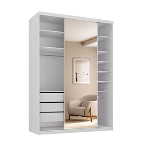 Conta com gavetas com corrediças telescópicas para deslizamento suave, além de espelho inteiriço na porta de correr, que traz elegância e amplitude ao quarto. Sua distribuição interna inteligente facilita a organização do dia a dia, oferecendo qualidade de móveis planejados em um produto pronto para transformar seu espaço. Acabamento da Prateleira: BP Melamínico Escala de Brilho da Prateleira: Fosco Possui Cabideiros: Sim Acabamento da Gaveta: BP Melamínico Escala de Brilho da Gaveta: Fosco Possui Organizador de Gaveta: Não Acabamento da Porta: BP Melamínico Escala de Brilho da Porta: Fosco Material do Puxador da Porta: Alumínio Acabamento dos Pés: BP Melamínico Altura do Espelho: 223 cm Altura dos Pés: 6 cm Altura Máxima dos Pés: 6.0000 Ambiente Principal: Quarto codigo_ean: 7900288252791 Complexidade da Montagem: Alta: deve ser montado por um montador especializado Cor: Branco Cor da Porta: Espelhado Cor do Produto: Branco Escala de Brilho: Fosco Espessura da Estrutura (mm): 15 mm Espessura das Portas (mm): 18 mm Espessura das Prateleiras (mm): 15 mm Espessura do Espelho: 3 mm Espessura do Fundo (mm): 3 mm Espessura do Fundo das Gavetas (mm): 3 mm Formato do Espelho: Retangular Gaveta com Chave: Não Itens Inclusos: 1 Guarda-Roupa, Manual de Montagem e Kit Ferragem Largura do Espelho: 66 cm Linha ou Coleção: Sion Manual de Montagem e Instalação: https://product-hub-prd.madeiramadeira.com.br/423609026/documents/cb88e471-5838-4693-b411-555e1dc40d4732648049451759859280105.pdf Marca: RR Móveis Material da Gaveta: MDF Material da Porta: MDF Material da Prateleira: MDF Material dos Pés: MDF Material Principal: MDF modular: Não Necessita Montagem: Sim Origem do Produto: Nacional Peso: 140 kg Peso Máximo por Gaveta: 10 kg Peso Máximo por Prateleira: 10 kg Porta Janelada: Não Possui Calceiros: 01 Possui Espelho: Sim Possui Pés: Rodapé Possui Portas: Sim Possui Prateleiras: Sim Produto Montado: Sim Quantidade de Cabideiros: 01 Cabideiro Quantidade de Espelho: 01 Quantidade de Gavetas: 03 Gavetas Quantidade de Portas com Espelhos: 1 Porta com Espelho Quantidade de Prateleiras: 08 Prateleiras Recomendações de Uso, Manutenção e Limpeza: Pano Umido Sapatas Niveladoras: Sim Sistema de Montagem: Parafusos e Cavilhas Tipo de Corrediça da Gaveta: Metálica Telescópica Tipo de Dobradiça/Corrediça da Porta: Metálica Tipo de Fixação do Espelho: Silicone Tipo de Gaveta: Interna Tipo de Guarda-Roupa: Solteiro Tipo de Puxador da Gaveta: Não Possui Tipo de Puxador da Porta: Externo Marca: Não Informado