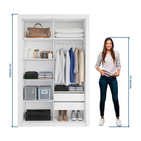 O Closet NT 6025 da Notável Móveis é a solução ideal para otimizar o seu quarto com estilo e praticidade. Equipado com 2 gavetas com corrediças metálicas, cabideiro em alumínio, maleiro espaçoso e 3 prateleiras bem distribuídas, este closet oferece tudo o que você precisa para manter suas roupas e acessórios organizados. Além disso, possui 2 nichos com um visual moderno, garantindo um toque de elegância ao ambiente. O Closet NT 6025 é perfeito para quem busca funcionalidade sem abrir mão do design