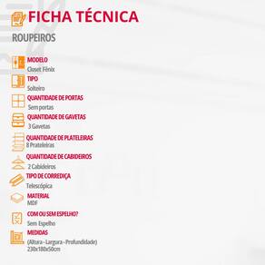 Dimensões do Closet: Altura: 230 cm Largura: 180 cm Profundidade: 50 cm Peso: 107,5 Kg