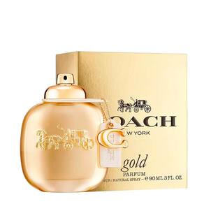 O Coach Gold Parfum - Perfume Feminino 90ml combina frescor especiado com notas florais e gourmand, ideal for momentos especiais, encontros românticos e climas quentes. Com fórmula vegana e frasco dourado com design de carruagem, é uma fragrância radiante e elegante para a mulher moderna.