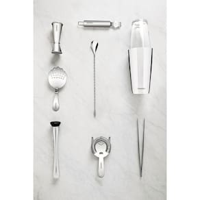 Totalmente feito de aço inox. Altamente duráveis, mantêm as características , preservando a beleza, a higiene e a durabilidade do material. Este coador se encaixa na parte inferior do copo, inclinado durante a coagem para que a bebida passe pelos furos e para que o gelo fique retido. O fato de não possuir molas permite que a espuma não fique retida na parte interior do líquido, pois a mistura vai ?fluir livremente? entre os orifícios. Acabamento em brilho. Higiênico e de fácil limpeza. Beleza e praticidade em seu design. Podem ser lavados, diariamente, na máquina de lavar louças.