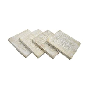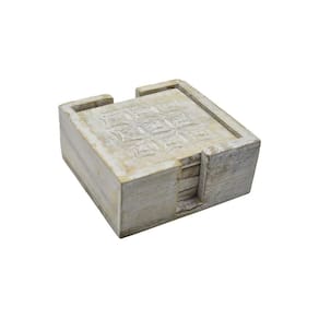 Conjunto STORE INDYA de 4 porta-copos quadrados de madeira feitos à mão com suporte para bebidas. Proteção de mesa Whitewash para qualquer mesa, porta-copos perfeitos para copos e copos de qualquer tamanho