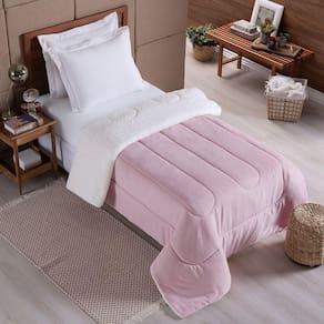 Coberdrom 1 Peça Solteiro Fleece Com Sherpa Noruega 100% Poliéster - Rosa Velho