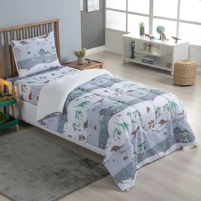 Coberdrom alegria edredom pele de carneiro solteiro infantil 01 peça dinossauro O coberdrom alegria vem em uma única peça, facilitando o uso e a arrumação da cama. Seu tamanho é perfeitamente adequado para camas de solteiro, proporcionando cobertura completa e calor reconfortante. a característica de pele de carneiro garante uma sensação suave e luxuosa ao toque, proporcionando uma experiência aconchegante e confortável. Esse material é altamente procurado por sua textura macia e quente, ideal para garantir uma noite de sono tranquila e agradável. com um design estampado vibrante e alegre, o coberdrom alegria atrai a atenção das crianças e adiciona um toque de personalidade ao quarto. A estampa é escolhida cuidadosamente para criar um ambiente acolhedor e para os pequenos. -importante: a tonalidade da manta pode variar para mais escuro ou claro que o da foto dependendo do lote do tecido. foto meramente ilustrativa. Conteúdo da embalagem - 01 coberdron, com medidas de 2,35 m x 1,40 m Composição textil - tecido: 100% poliéster - enchimento: 100% poliéster / manta 120 gramas Ficha técnica - quantidade de peças: 1 - estampado: sim - bordado: não - fabricação: pantografado Orientações para lavagem - utilizar processo de lavagem muito suave ou manual; - evite deixar o produto de molho, pois roupas de cama de cor forte podem desbotar; - utilizar sabão neutro. Evite sabão do tipo limpeza profunda e/ou tira-manchas; - lavar com temperatura máxima de 30c; - não alvejar / não branquear; - não secar em secador rotativo não centrifugar ; - não lavar a seco; - passar com temperatura baixa temperatura máxima de 110c ; - vapor pode causar danos irreversíveis. Atenção - verificar as dimensões do produto antes da compra. - é necessário levar em consideração a altura da cama ou a altura do box da cama + colchão, para que o caimento do produto seja perfeito. - siga as orientações para lavagem para aumentar a vida útil das peças - foto ilustrativa. - variação das cores pode ocorrer de acordo com o monitor. - as peças decorativas não estão inclusas neste produto. Marca: Lux Enxovais