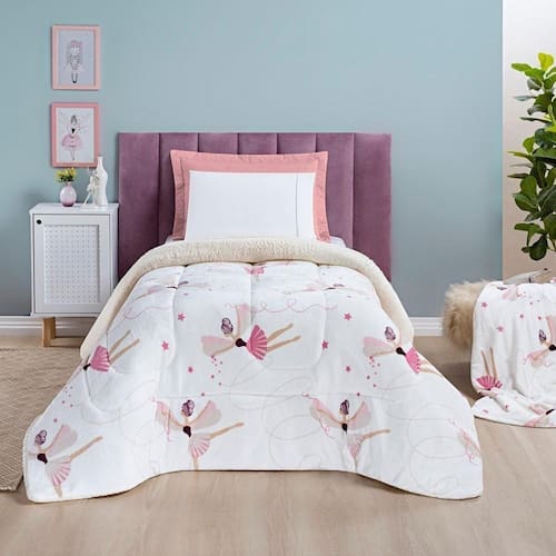 Coberdrom Bouti Kids Solteiro 01 Peça - Bailarina O Coberdrom Bouti Kids é confeccionado com Sherpa (toque de pele de carneiro) de um lado e manta flannel estampado do outro lado, muito fofinho e quentinho para garantir boas noites de sono. Produto composto por: 01 Coberdrom 2,40m x 1,50m Composição: Tecido Sherpa: 100% Poliéster Enchimento: 100% Poliéster Manta Microfibra: 100% Poliéster Marca: Bia Enxovais | Estampa: Não se Aplica | Medidas: 01 Coberdrom 2,40m x 1,50m | Número de Peças: Avulsa | Material: Poliéster | Cor Predominante: Bailarina | Cama Indicada: Solteiro