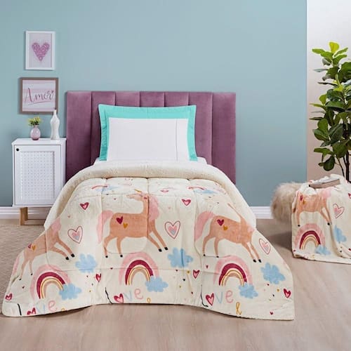 Coberdrom Bouti Kids Solteiro 01 Peça Manta Alta 150g - Unicórnio