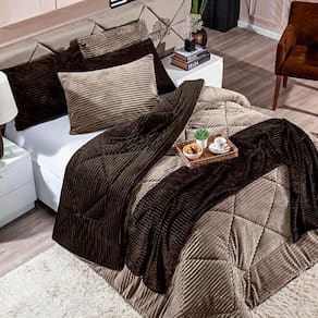 A nova coleção de coberdrons Denver traz toda a sofisticação e aconchego. Por possuírem dupla face, apresentam superfície que valoriza ainda mais as cores! Confeccionado em pantográfica computadorizada com lindos desenhos geométricos. Novidade e tendência para o inverno desse ano, o coberdrom é composto de Manta Canelada Microfibra, com aquele toque incrível que conforta e aquece nas noites mais frias. Composição feita em poliéster com 150gr de enchimento, maravilhoso, sofisticado e extremamente macio, perfeito para aquecer, acompanhando também os dois porta-travesseiros canelados com Zíper. Ideal para decorar, trazer conforto e tornar o quarto ainda mais convidativo e elegante! Confira! Contém:01 Coberdrom Queen 2,40m x 2,20m02 Porta Travesseiros Canelados 70cm x 50cm