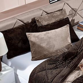 Kit Coberdrom Canelado Dupla Face Denver Queen 03 Peças - Manta Microfibra Canelada Cor Caqui