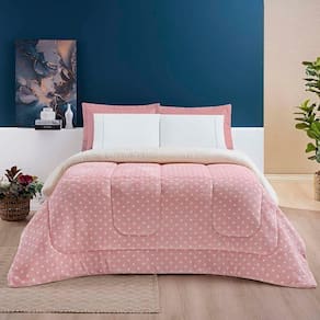 A Coleção Celine aposta na simplicidade e no clássico, tendo como destaque as icônicas bolinhas. Essa coleção é perfeita para aquecer seu inverno, e conta com materiais de alta qualidade, como o Tecido Sherpa e a Manta Flannel Microfibra. Esses tecidos proporcionam uma sensação de toque suave, lembrando a lã de carneiro, e extremo conforto para suas noites de sono. Deixe-se inspirar por essa coleção encantadora!.