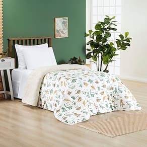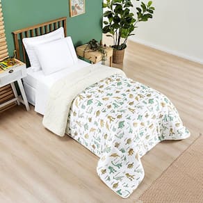 Coberdrom Cobertor Lutti Solteiro Quarto Cama Infantiil Sherpa Manta Toque Lã de Carneiro Dinossauro Verde - Única