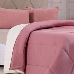 Coberdrom Duetto Queen Malha 100% Algodão Sherpa 220x240cm - Rosê
