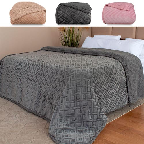 Características: Tamanho: King - 240cm x 260cm Dupla Face - Pode ser utilizado de ambos os lados. Sherpa extra macia. Tecido flannel texturizado em alto relevo. Efeito Brushed: Muda de textura ao passar a mão. Tecido: 100% Poliéster