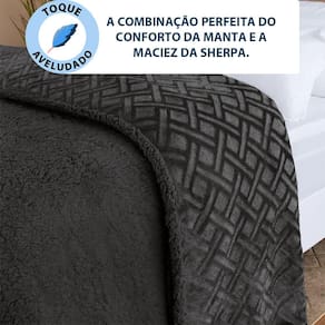 Características: Tamanho: Queen - 220cm x 240cm Dupla Face - Pode ser utilizado de ambos os lados. Sherpa extra macia. Tecido flannel texturizado em alto relevo. Efeito Brushed: Muda de textura ao passar a mão. Tecido: 100% Poliéster