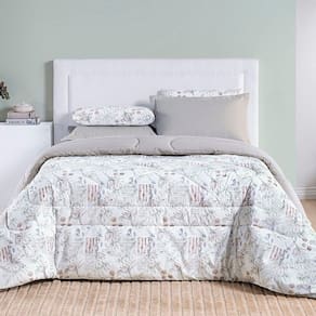 Tecido: Percale 80% Algodão - 20% Poliéster, garante maciez, respirabilidade e durabilidade.Acolchoado: Edredom todo acolchoado, proporcionando maciez e fofura incomparáveis.Matelado: Detalhes em matelado que conferem um design sofisticado e elegante.