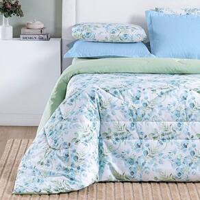 Tecido: Percale 80% Algodão - 20% Poliéster, garante maciez, respirabilidade e durabilidade.Acolchoado: Edredom todo acolchoado, proporcionando maciez e fofura incomparáveis.Matelado: Detalhes em matelado que conferem um design sofisticado e elegante.