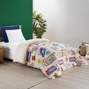 Coberdrom Cobertor Fantasy Solteiro Infantiil Sherpa Manta Toque Lã De Carneiro - Dinossauro Coberdrom Fantasy, produto confeccionado em Tecido Sherpa e Manta Flannel Microfibra, sensação de Toque de Lã de Carneiro. opção perfeita para decorar e se aquecer no inverno. Em estampas temáticas e divertidas que vão complementar a decoração do quarto do seu pequeno.
