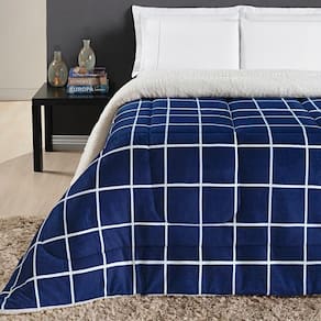 Coberdrom Sherpa E Flannel Austin Queen Manta 100g 01 Peça - Marinho O Coberdrom Austin é confeccionado com dois tecidos diferentes, de um lado ele possui o tecido sherpa no qual imita pele de carneiro, já do outro lado ele possui o tecido manta flannel de microfibra. Proporcionando assim uma noite quentinha, de muito conforto e aconchego. Produto comporto por: 01 Coberdrom 2,40m x 2,20m Composição Tecidos: 100% Poliéster Manta: 100 gramas/m Marca: Bia Enxovais | Estampa: Não se Aplica | Medidas: 01 Coberdrom 2,40m x 2,20m | Número de Peças: Avulsa | Material: Poliéster | Cor Predominante: Marinho | Cama Indicada: Queen